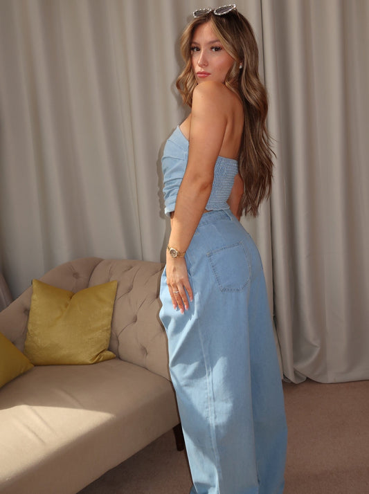 “Renee” Denim Bandeau Top and Drop Waist Trousers Co-ord