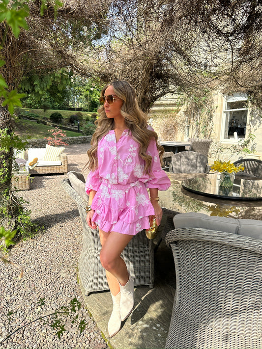 "Aimee" Embroidered Shirt and Skort Co-ord - Pink