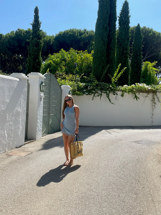 "Tala" Cut Out Mesh Maxi Dress - Light Blue