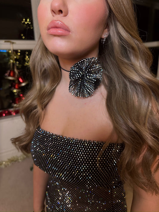 "Belle" Bandeau Crystal Mesh Dress with Neck Tie