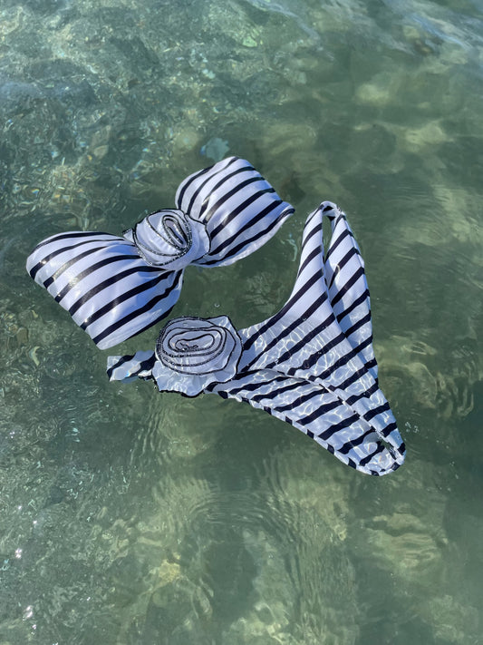 “Cannes” Bandeau Rose Bikini - Black Stripe
